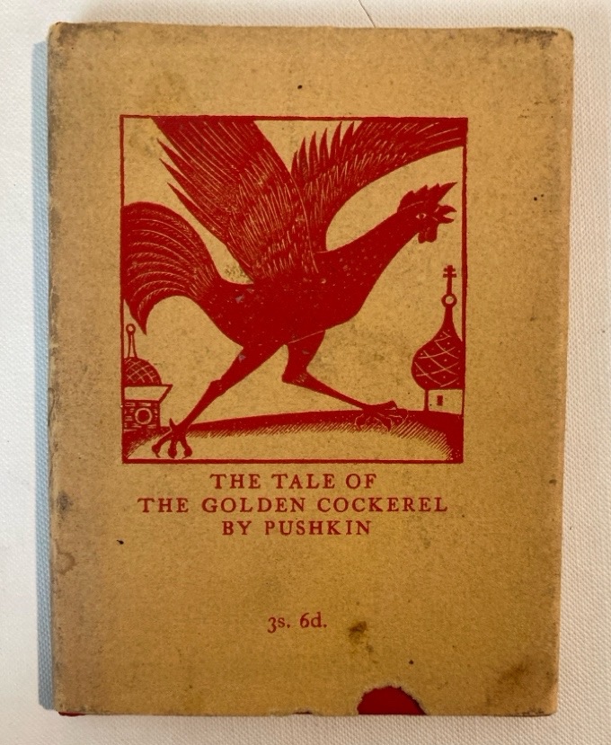 Description: 23p, very small format, red cloth fresh, yellow jacket present but dusty, title in gilt, "translated from the Russian of Alexander Sergeyevitch Pushkin by Hannah Waller with a note on Pushkin and the tale by Raissa Lomonossova" woodcut by Robert Gibbings, "Second impression", light soiling to endpaper where a moth may have found its end