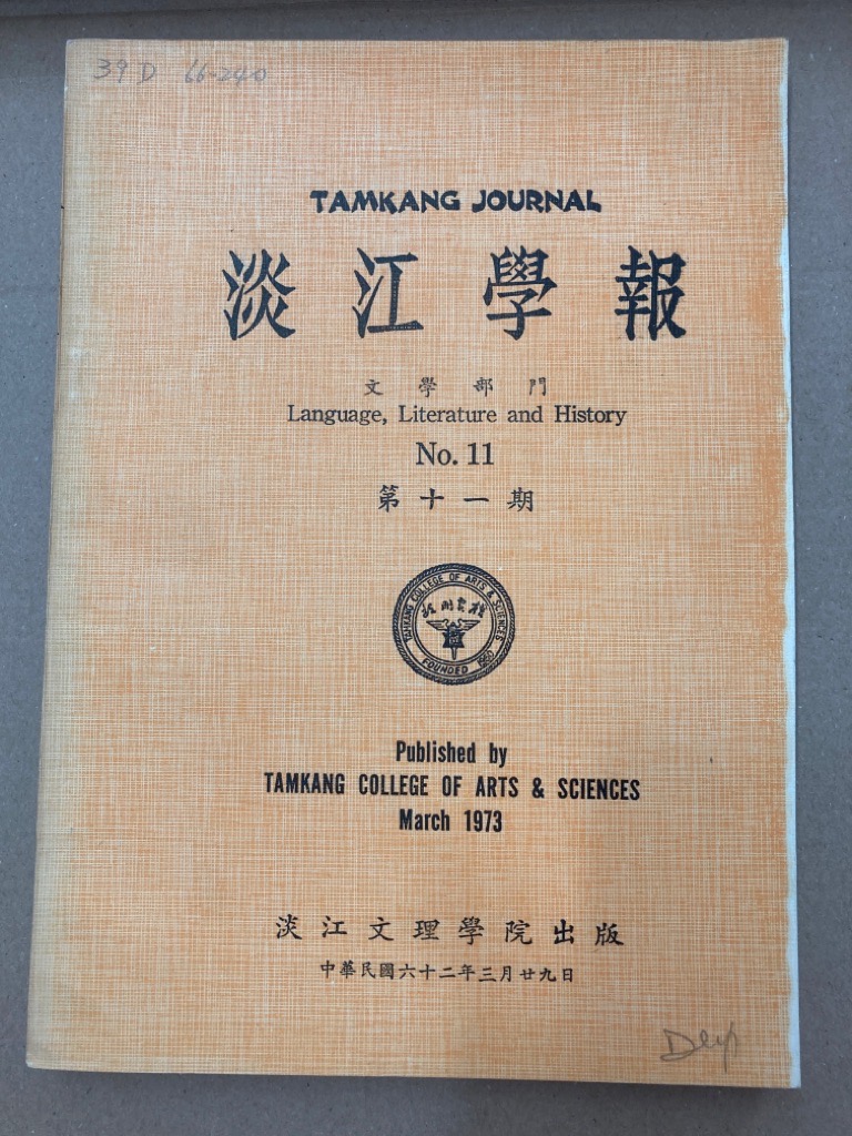 Publisher: Taipei: Tamkang College of Arts and Sciences 1973.