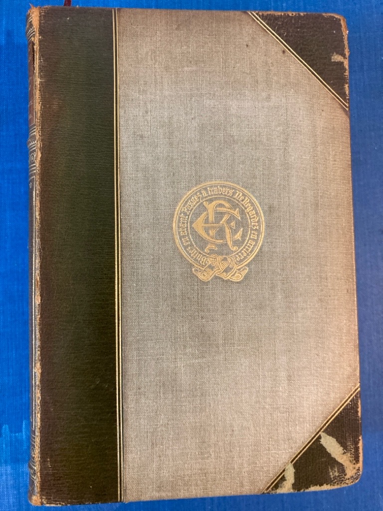Description: 361p bound in decorative half calf with decorative armorial monogram to front ("Buttez en avant, Passez a travers, Ne regardez en arriere"), text printed with ornaments, binding in nice condition with minor rubbing,