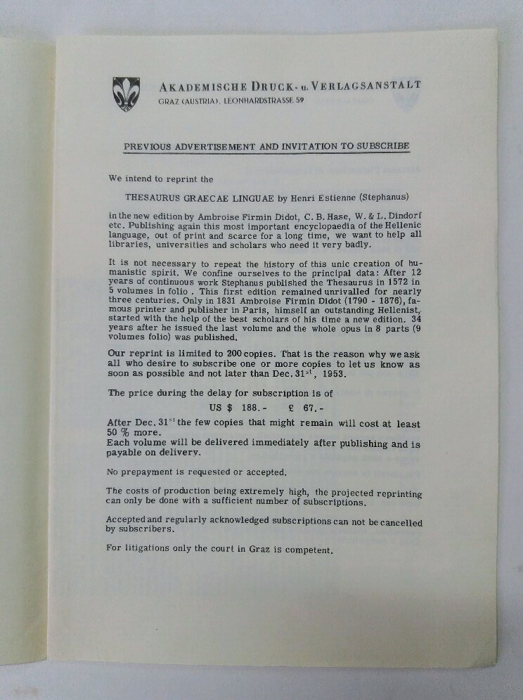 Description: 8p unbound booklet, like new condition, no noticeable wear, text and illustrations very clear and sharp, a near-perfect copy of a very rare advertisement and subscription invitation; the booklet's content is primarily in German but most is also given in English, French and Italian