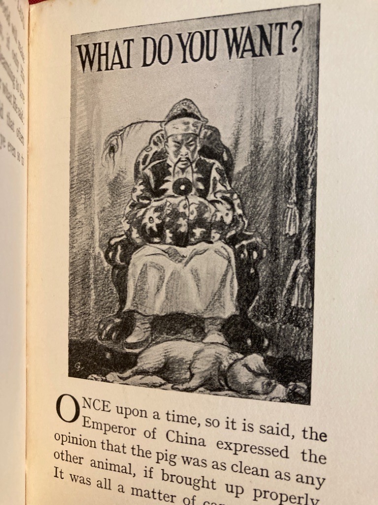 Description: 49p slim hardback illustrated cover (Man picking up a dog), spine a little creased, inscription dated 1930, a clean copy, each story has its own illustrated title: A Stiff Climb; A Brave Defender; The Two Pennies, The Fire in the Frozen Land; What do you want? (Story about a royal Chinese pig receiving a lambs heart transplant)