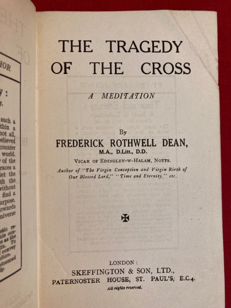 Description: 112p hardback, original light blue cloth with blue border, titles and crucifix motif to centre, spine darkened with stain to edge of front board otherwise very good, pages very bright and clean though some pages are dog-eared