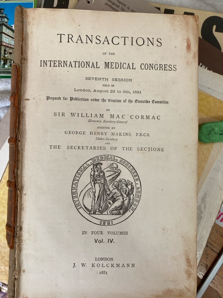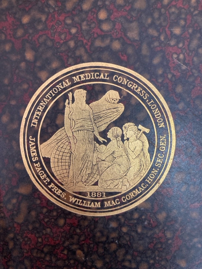 Description: xvi 592p half calf binding defective (boards detached, spine missing) sewing tight, top edge gilt, contains a variety of contributions and discussions on Diseases of Children, Obstetric Medicine, State Medicine. With illustrations, maps (Hydrophobia in Holland) and a very extensive table about milk spreading Zymotic disease in the UK, no names or stamps