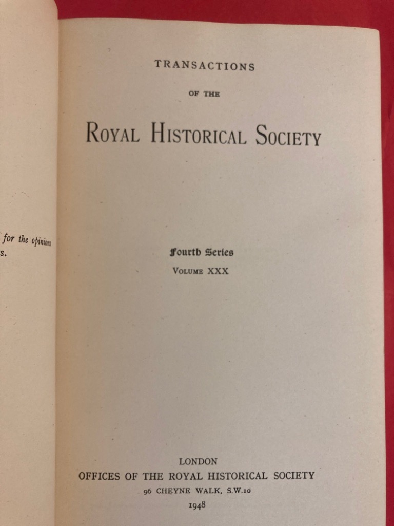 Publisher: London: Royal Historical Society 1948.