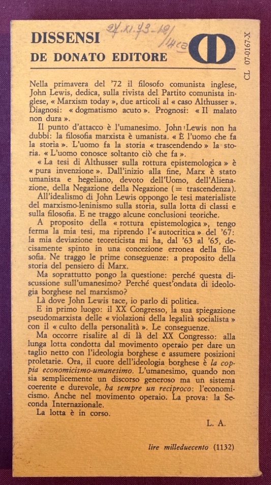 Publisher: Bari: De Donato 1973. (Dissensi.)