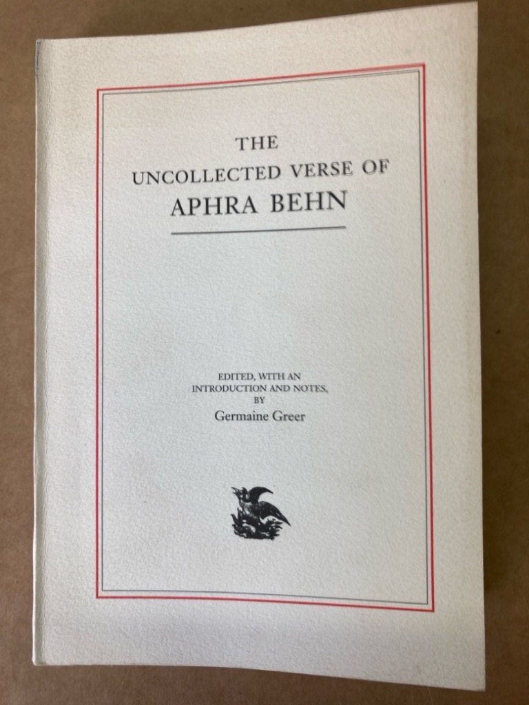 Description: x 224p paperback, beige cover with black lettering, very good condition, covers a bit tanned, minimal wear to edges, binding firm, pages very clean and neat, an excellent copy; the book was edited by Germaine Greer, and this copy includes a personal inscription from her on the title page, as well as a handwritten postcard from her to the copy's previous owner (ISBN: 9781872029009)
