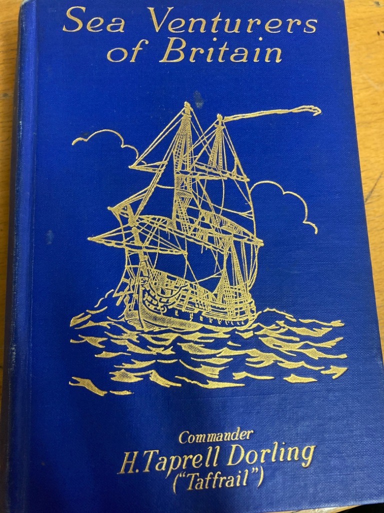 Description: 316p blue cloth with bright gilt décor showing sailing ship, spine still bright, excellent copy, first edition