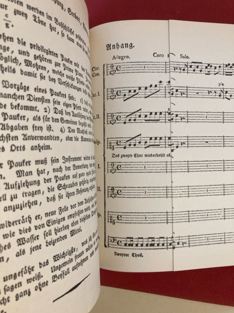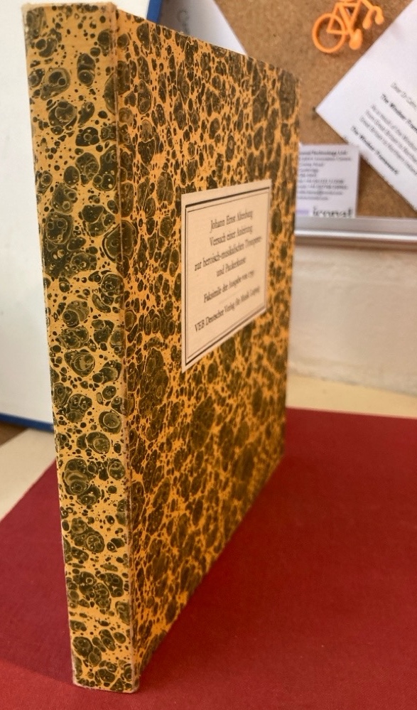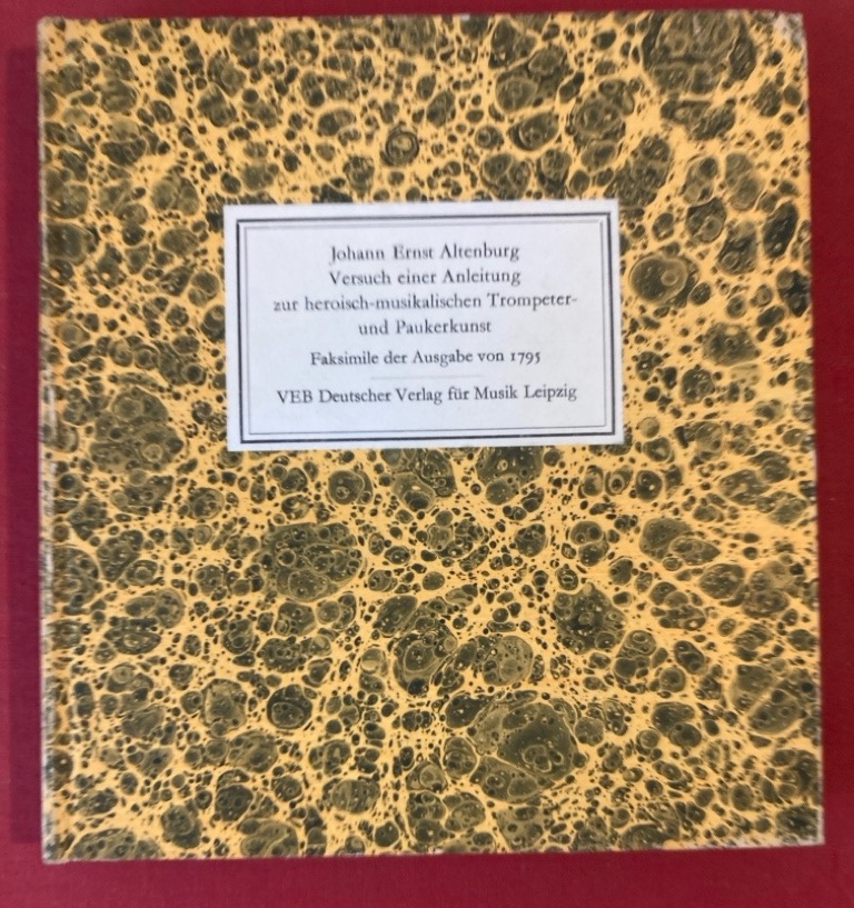 Description: x 156p hardback, marbled paper cover with title label to front, fresh and tight copy, folding pages with musical notation in the back, hard to find facsimile edition: Drums and trumpets