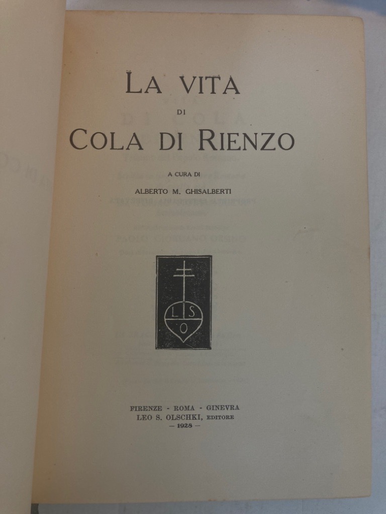 Publisher: Roma: Olschki 1928.