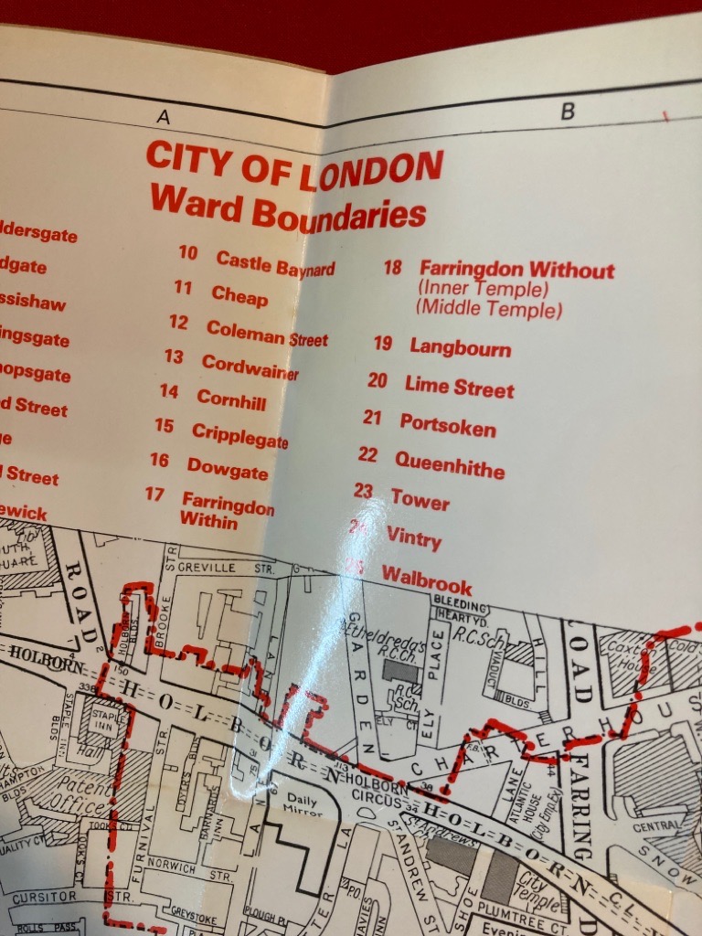 Description: well folded map, showing ward boundaries in red ink, excellent copy, this map printed on plasticised reflective paper