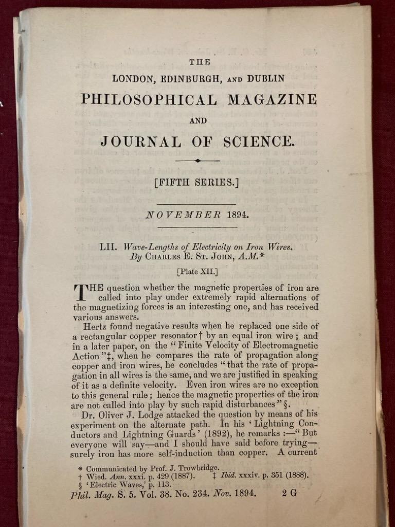 Description: 18p essay, removed from binding, dis-bound item, solid, with illustration and folding plate, very good, salvaged from a broken up volume, clean, with on similar by Trowbridge