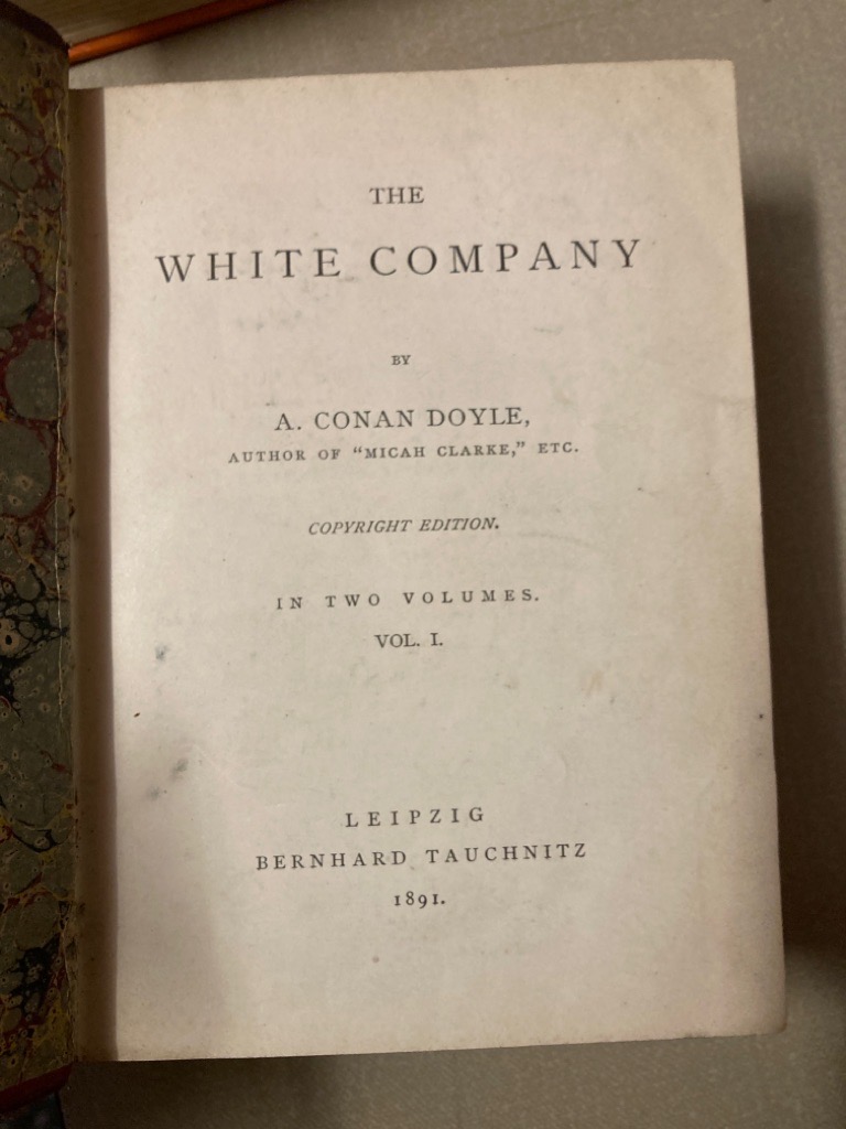 Description: 551p hardback, dark red cloth with marble pattern, good condition, general wear to cover, tanning to page edges, binding intact but with rear endpaper partially loose, pages clean and bright, still a good copy of rare early edition that contains both volumes bound as one