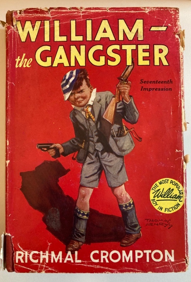Description: 252p hardback, dustjacket edges a bit worn, frontispiece illustration coloured in with a gleeful hand, clean text, a hnadwritten suggestion to endpaper "I suggest that all children in Britain read WILLIAM!", seventeenth impression