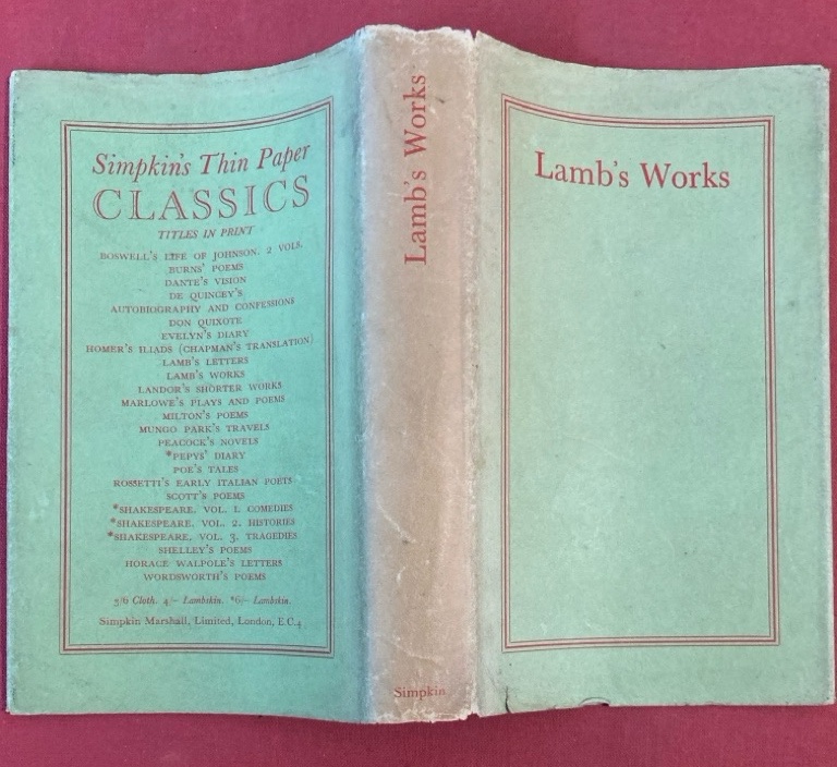 Publisher: London: Simpkin, Marshall 1933. (Simpkin's Thin Paper Classics.)