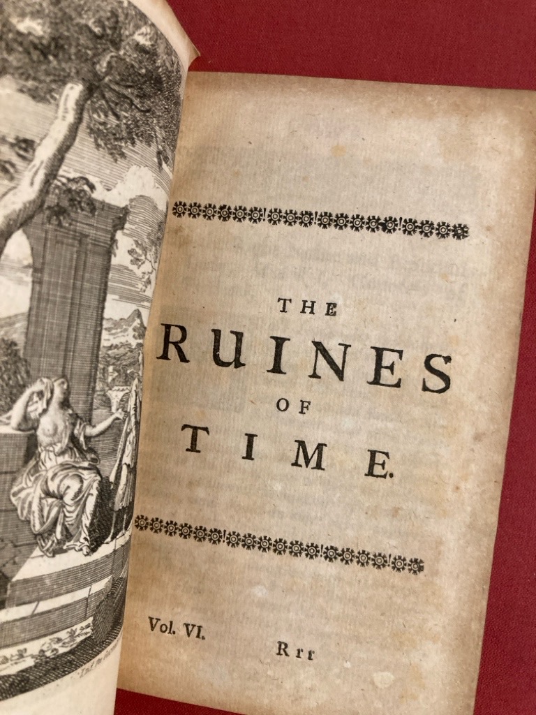 Description: paginated 1459 - 1758, full calf binding (17 cm), front board detached, sewing holding well but spine shows lateral crack, two frontispieces, volume 6 ONLY, contains State of Ireland etc