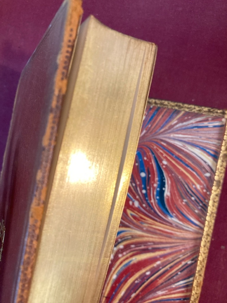 Description: 515p full calf, full calf, gilt arms "Virtus Vera Nobilitas" to front, calf hinges yielding and boards a little loose, all edges gilt, spine and leather edges a little raw, text very clean and fresh, all edges gilt, nice