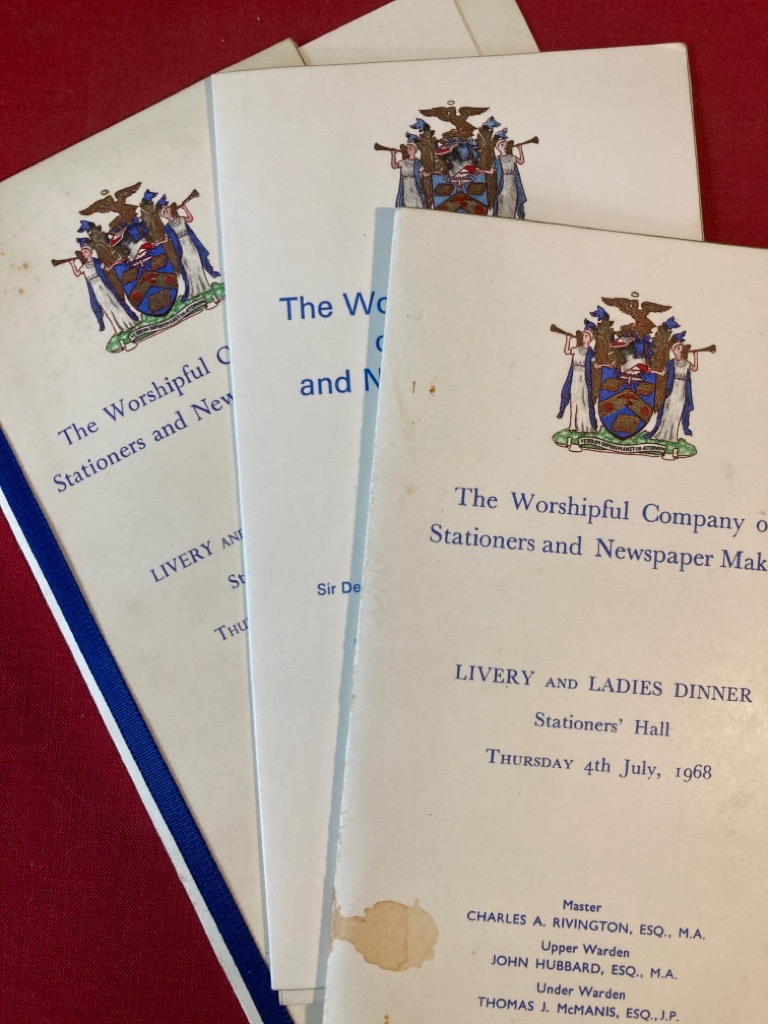 Description: Livery and Ladies Dinner 1967, 1968, Charter Dinner 1975, also one invitation card (1971), one similar, a little dusty, together