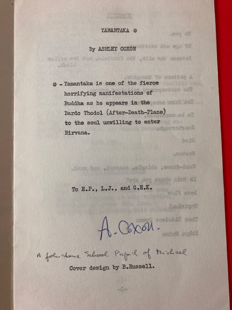 Description: 12p slim booklet stapled, signed, poetry from typescript, well preserved, cover design by B Russell