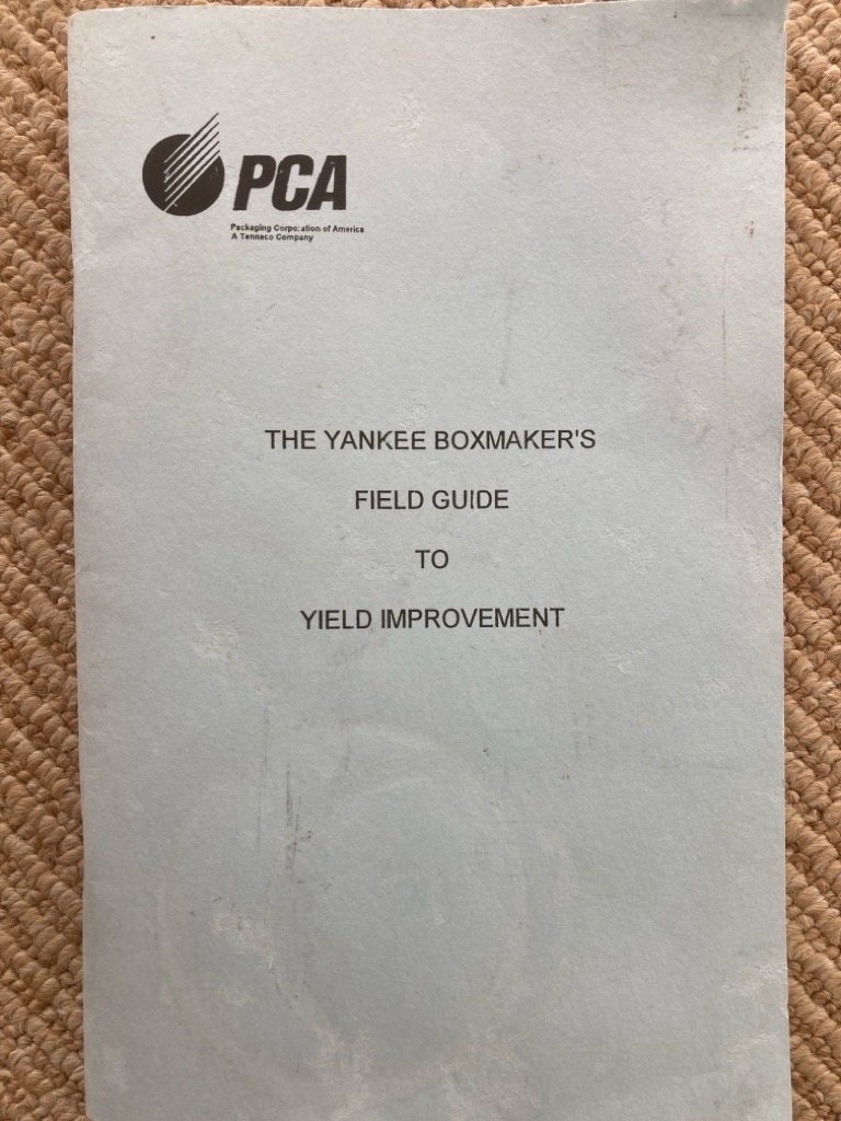 Description: iv 21p [30p] ix, stapled booklet, light blue cover, light imperfections to paper, clean copy, containerboard and corrugated solutions with yield imperatives, includes contributions by Dwight Ebeling