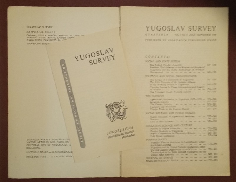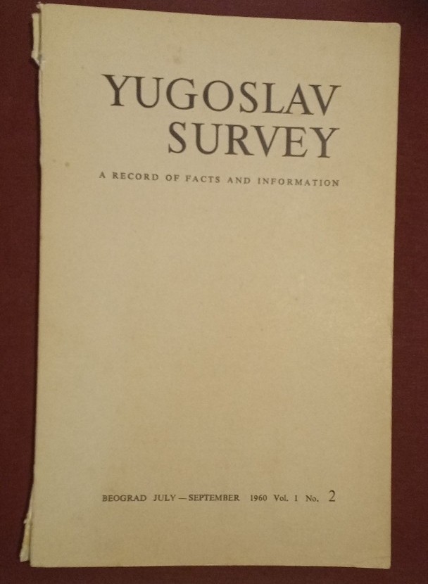 Description: 156p paperback, tan card covers, very good condition, spine worn at both ends, binding intact, all pages clean and neat, text and tables very clear and legible, a good copy of a scarce number, considerable information on economics and society of Yugoslavia, includes original subscription booklet in like-new condition