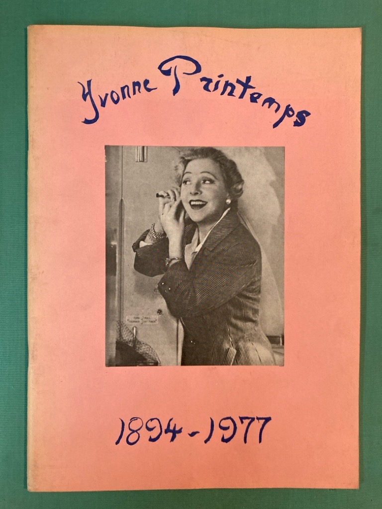 Description: Large pink well produced stapled tribute to Yvonne Printemps with biographical contributions by Liff, Gielgud and Newton, many photographic illustrations, limited to 300 copies, A4 format, printed by Dimbleby and Sons for Patrick O' Connor, real photographs mounted
