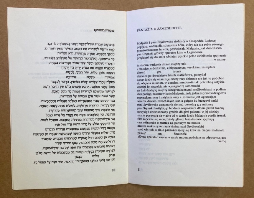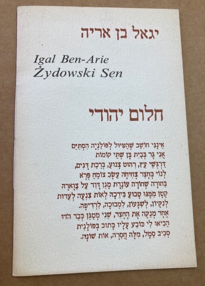 Description: 16p small neat stapled booklet, card cover with Hebrew lettering, very nice copy, small neat ex libris, no names or stamps, parallel text in Polish and Hebrew, very rare title, number 103 of only 150 copies